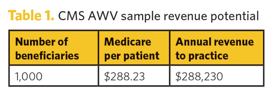 If visits are coded and billed properly, Hamilton said, each AWV could generate up to $288 in 2021 (based on the Nevada non-facility rates) while closing care gaps and improving quality scores for value-based programs (e.g., MIPS):