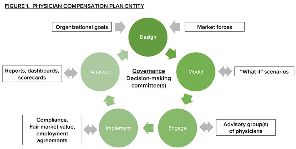 The physician compensation plan is much more than a set of equations to calculate pay. It is an organized entity with a governance structure, responsibilities and functions necessary to align organizational goals with compensation plan principles and tactics.