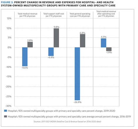 Others will say that physician practices are “loss leaders” or that health systems ultimately make up the difference elsewhere in the overall enterprise. “At the end of the day, it’s all one pot of money,” they say.