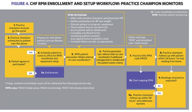 Initially, billing for remote care and chronic care services will be completed through the remote care vendor’s software. Patients who only wish to be enrolled in the CCM program will be billed through the practice’s EHR. There are plans, however, to create an interface with the practice’s EHR to capture all data. The time frame for the interface has not yet been established.