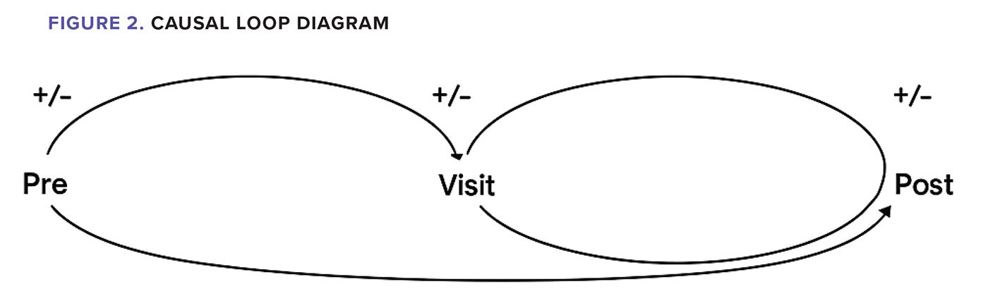 Figure 2 offers another tool that explains interconnectedness: the casual loop diagram. It highlights the importance of accurate demographics, insurance and relevant medical information in the pre-visit stage — and how that accuracy can positively (or negatively) influence the visit and post-visit stages in a single patient’s experience.