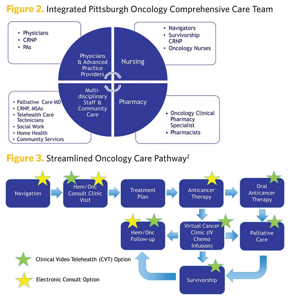 The VA Pittsburgh Healthcare System (VAPHS), the largest and most complex VA healthcare system in Pennsylvania, has instituted innovative in-person and virtual comprehensive team-based care for oncology patients that uses the right modality at the right time for the right type of care. As a result of Pittsburgh VAPHS’s innovative Oncology Comprehensive Care Model (OCCM), an extremely sick veteran cancer patient living in Erie, Pa. — 128 miles away with a minimum two-hour drive — can avoid the exhausting travel to the Pittsburgh oncology “hub” while retaining a relationship with his/her oncologist and receiving appropriate, effective, timely care. Through Pittsburgh VAPHS’ OCCM, all the critical elements of a Veteran’s cancer pathway are systematically addressed in relationship to their stage of cancer and related healthcare needs.
