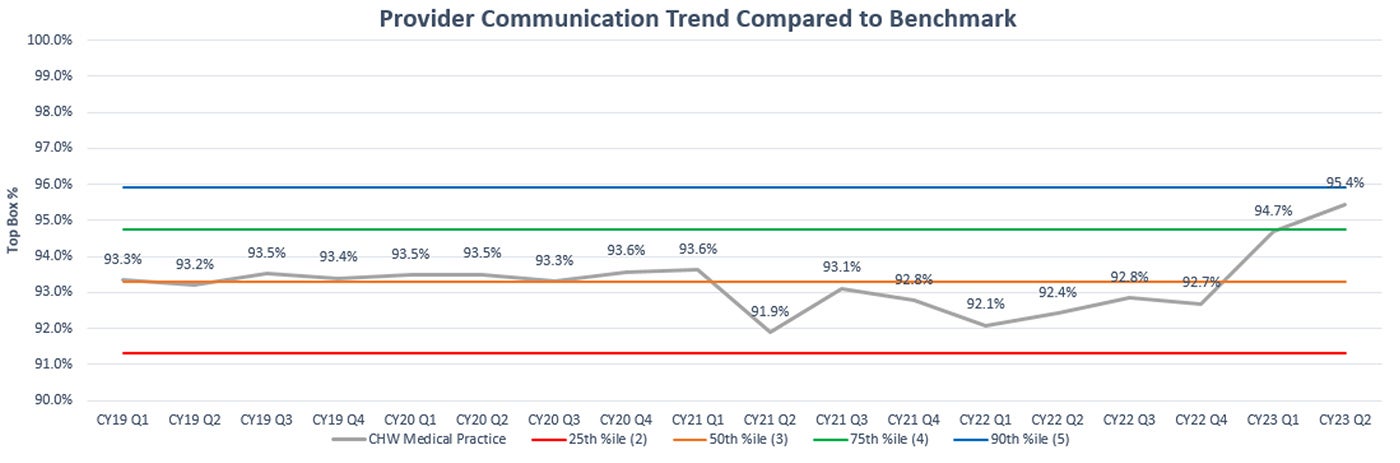 *Trend graph of provider communications scores with benchmark lines