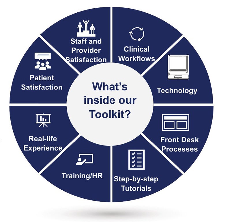 Together, the team created a series of virtual training modules for the trainers, with the remaining modules delivered in-person at their practices, covering HIPAA/privacy, policies and procedures, human resources (HR) support, review of the training checklists, customer and patient experience training and incident reporting. Binders were created for the trainers to hold important information, training materials, completed checklists and other relevant documents at each site.