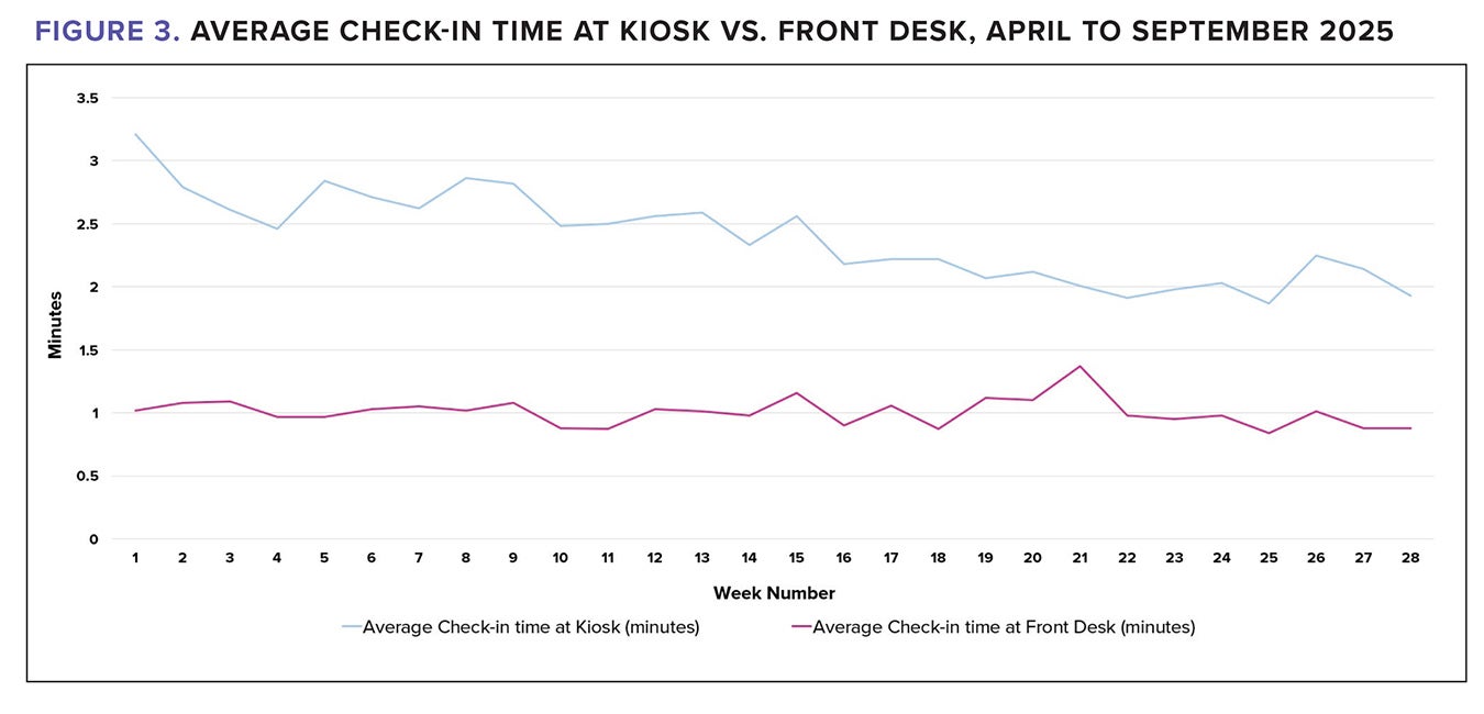 - Average Check-in time: kiosk vs. Front desk