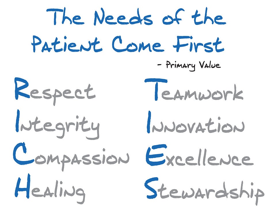 This philosophy helped to shape the culture and values of Mayo Clinic. The culture of any organization will be shaped by explicit and implicit displays of positive values, how attitudes and values are embraced through behaviors, symbols, and rituals.28 Organizational values define what is important, shaping the organizational behavior and serving as a guide in making decisions, crystallizing the direction.29