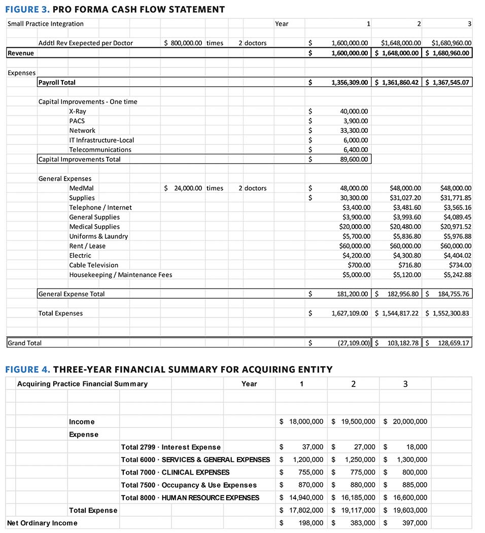 The second table represents the larger acquiring entity’s financial summary for a three-year period. This is a summary overview of the income and expenses of the larger company. While it may appear that profits are minimal, at least one-third of the HR expenses are dedicated to profit distribution.