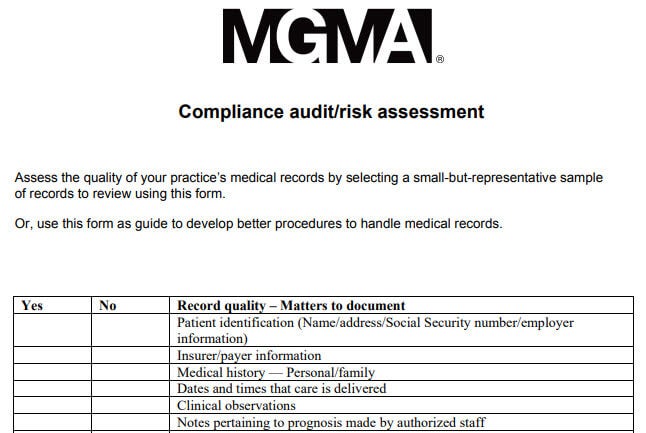 Assess the quality of your practice's medical records by selecting a small-but-representative sample of records to review using this form. Or, use this form as a guide to develop better procedures to handle medical records.