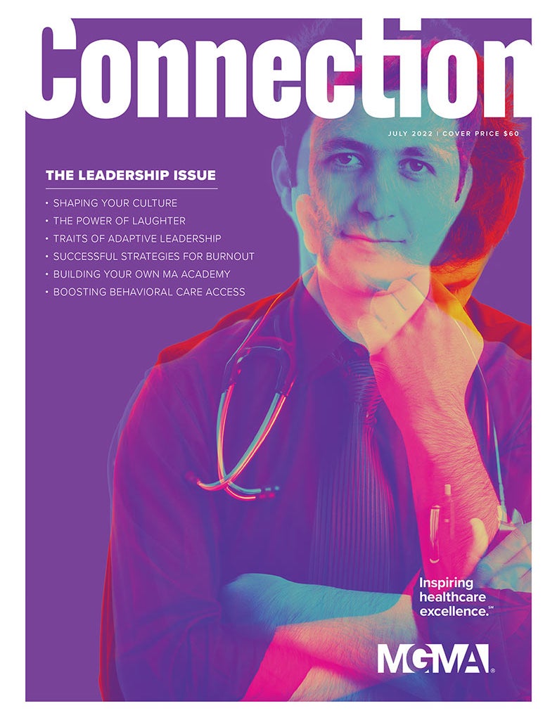 MGMA Connection magazine is MGMA's flagship publication for medical practice management, providing in-depth coverage of key industry topics and tip-oriented articles for medical practice professionals in all types of healthcare delivery organizations. MGMA Connection magazine is published four times a year: January, April, July and October.
