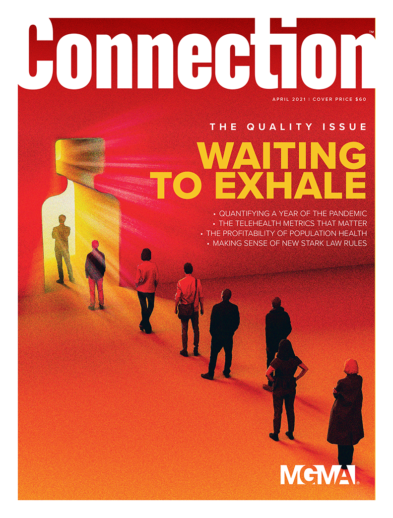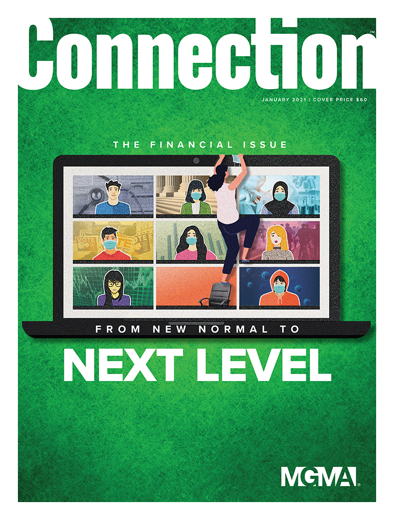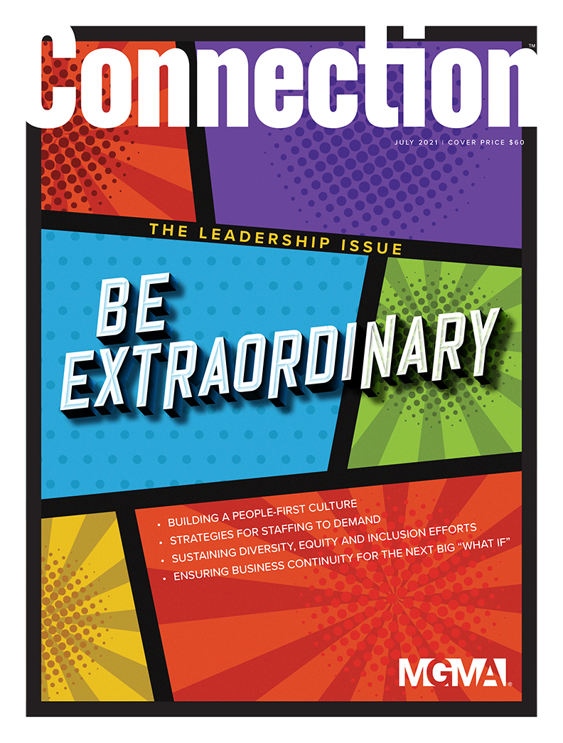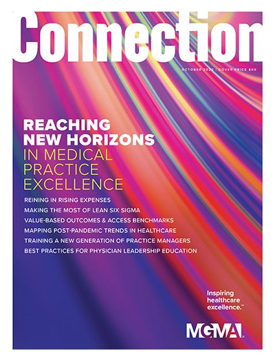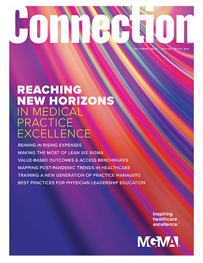 Editor's note: Many articles published before 2020 remain on this site as standalone pages. If you are looking for a specific article from older issues of Connection, Executive View and MGMA Connection Plus were archived offline in 2018. If you are looking for a specific article or information on past issues, please email connection@mgma.com.