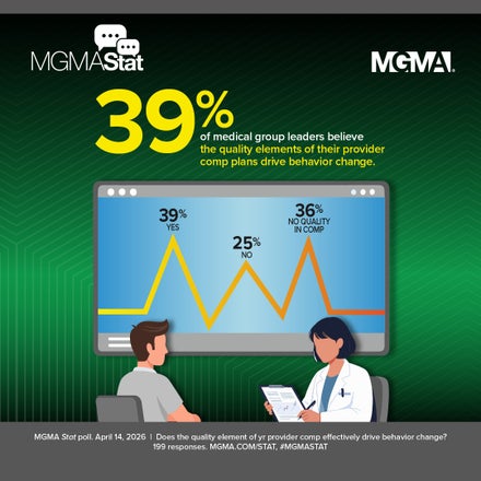 Your contributions are vital to MGMA’s ongoing work to provide great resources, education and advocacy for medical group leaders. Sign up for MGMA Stat to make your voice heard in our weekly polls. Simply text “STAT” to 33550 or visit mgma.com/stat. Polls will be sent to your phone via text message.