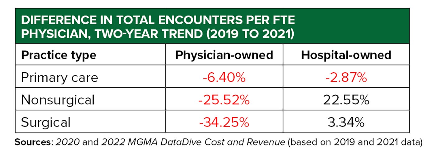Ahead of the upcoming release of the 2023 MGMA DataDive Cost and Revenue survey data set this summer, recent benchmarks for these crucial areas of hiring found that independent and hospital-owned practices were still struggling to get back to pre-pandemic levels.
