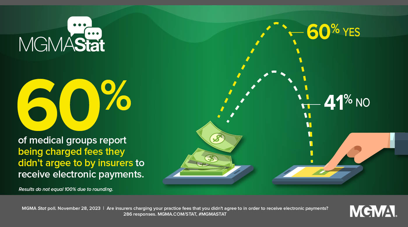 Most medical groups are still being charged fees they didn’t agree to by insurers to receive electronic payment, according to a new MGMA Stat poll.