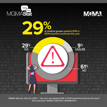 - “Averting crisis with a well-documented plan for EHR, RCM downtime” (MGMA Stat)