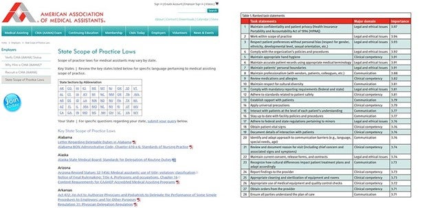 2 AAMA. “State Scope of Practice Laws.” Available from: https://www.aama-ntl.org/employers/state-scope-of-practice-laws.