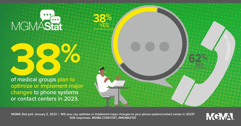 Our ability at MGMA to provide great resources, education and advocacy depends on a strong feedback loop with healthcare leaders. To be part of this effort, sign up for MGMA Stat and make your voice heard in our weekly polls. Sign up by texting “STAT” to 33550 or visit mgma.com/stat. Polls will be sent to your phone via text message.