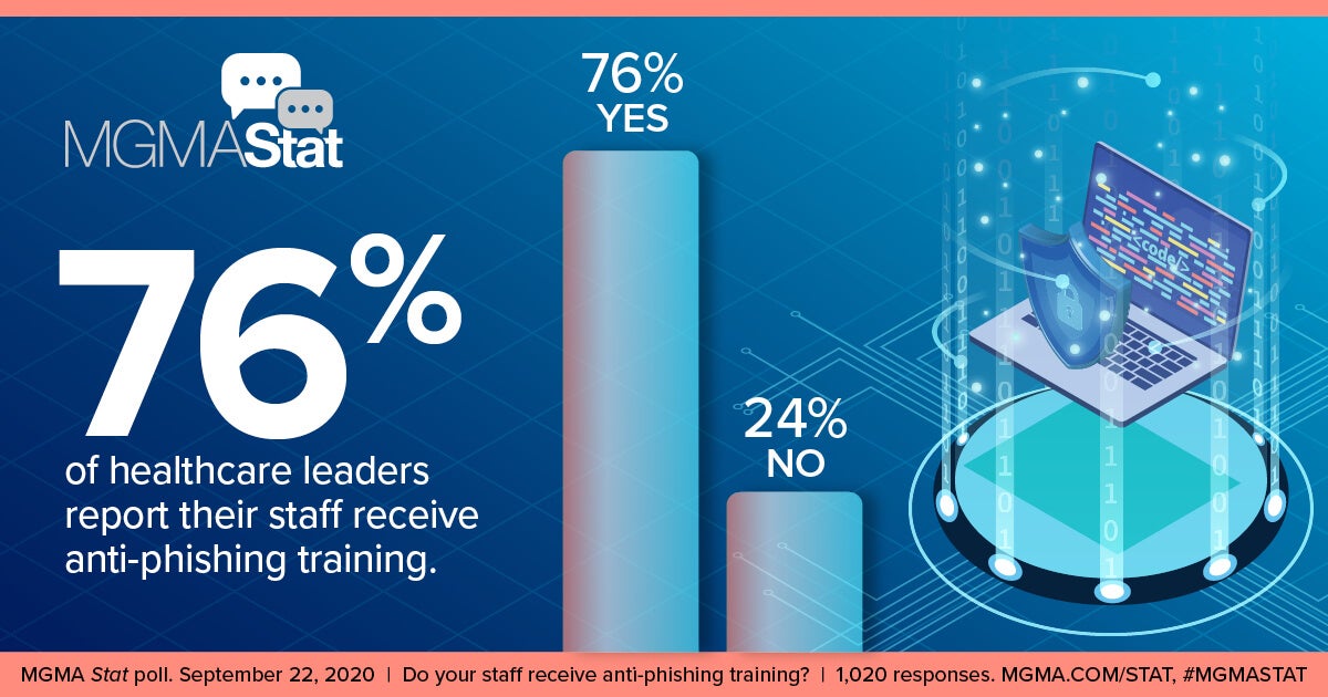 The Medical Group Management Association’s most recent MGMA Stat poll asked healthcare leaders, “Do staff receive anti-phishing training?” The majority (76%) responded “yes,” while 24% said “no.”