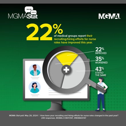 Ask MGMA receives several questions about how medical group practices respond to being short-staffed and handling high employee turnover. In our recent 2023 MGMA DataDive Practice Operations survey report, MGMA’s latest benchmarking data show that turnover rates for front office staff across all practices hit 40% in 2022, and clinical support and business operations support staff turnover rates were 33%.