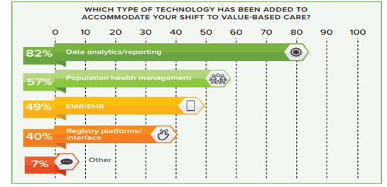 That shift toward value requires many new approaches. In a combined research report between MGMA and Humana in 2022, data analytics/reporting platforms, population health management tools and EHR tools were the top technological additions to boost value-based plan participation.