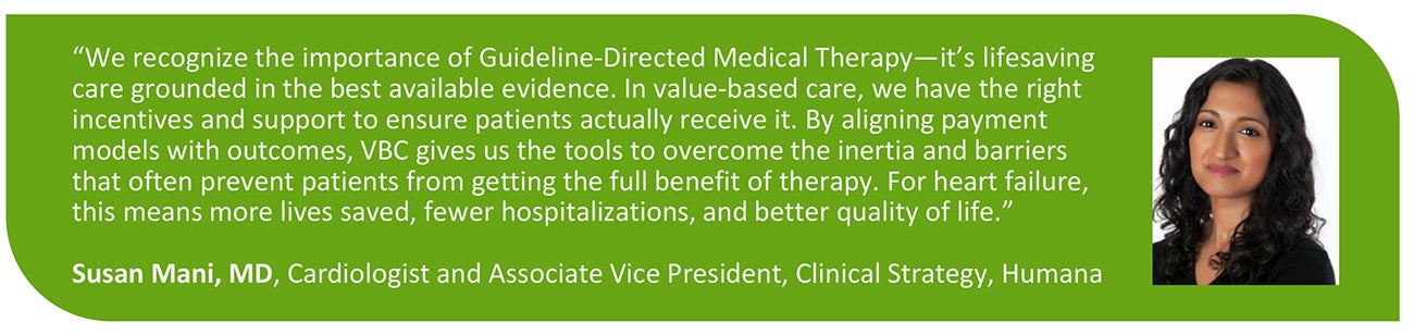 Humana’s newest Value-Based Care Issue Brief reinforces that the value-based care model is the meaningful difference for patients with heart failure with HFrEF. Those receiving care from value-based primary care clinicians experienced better medical management.