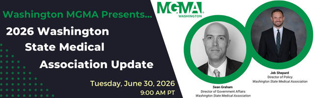 This session will provide an overview of key health policy and budget outcomes from the 2026 Washington State legislative session, along with an update on federal and regulatory activity affecting medical group practice in Washington state. Speakers will highlight Washington State Medical Association (WSMA) resources and explore how WSMA and the Medical Group Management Association (MGMA) can serve as strategic partners in advancing and supporting medical group practices.